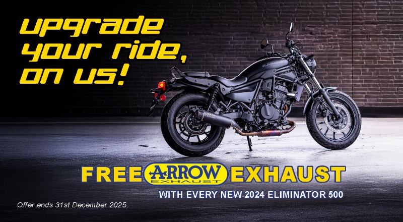 Kawasaki is giving all customers who purchase a 2024 MY Eliminator 500 or Eliminator 500 SE before December 31st a FREE Arrow exhaust upgrade!